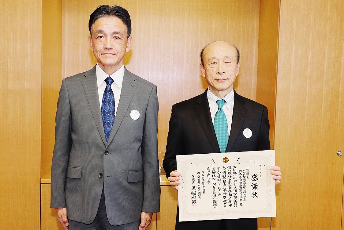 【前橋】日本自動車販売協会連合会群馬県支部及び群馬県自動車販売店協会(星崎功明支部長・会長)は、2023年の交通警察業務運営に貢献し、交通安全啓発活動に協力した功績が評価され、群馬県警察本部交通部から感謝状を贈呈された=写真。 このほど、...