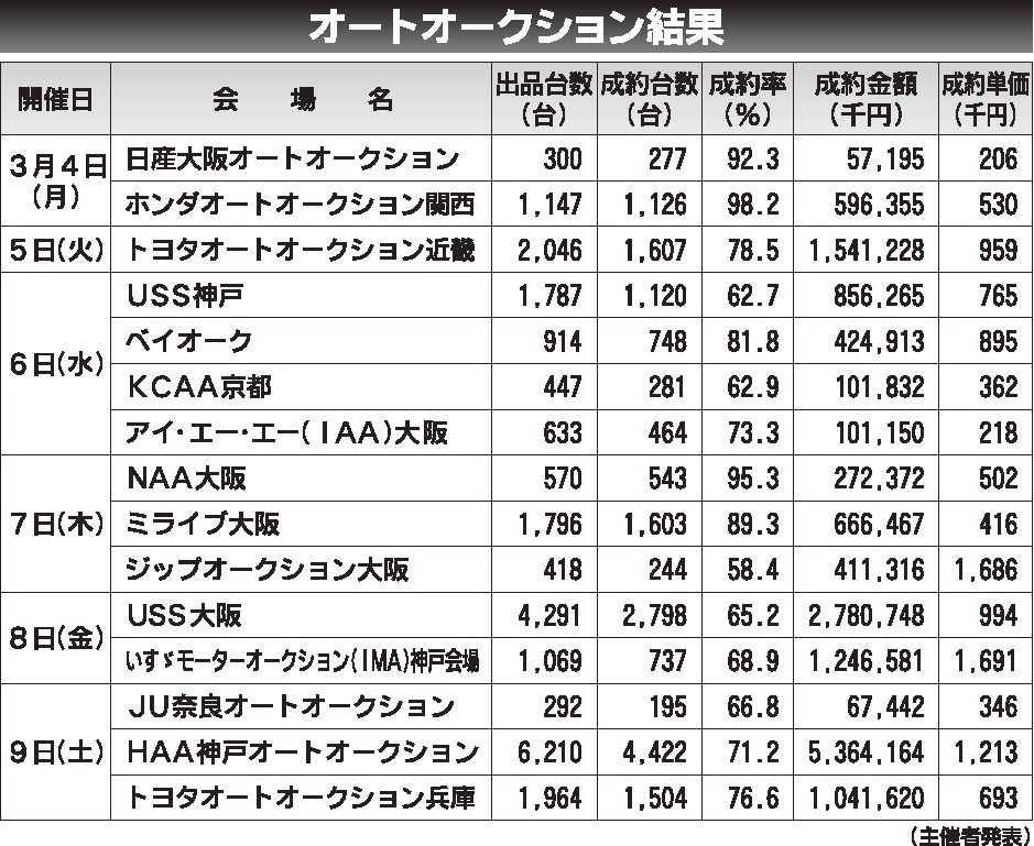 〈オートオークション結果〉近畿地区 2024/3/4~9