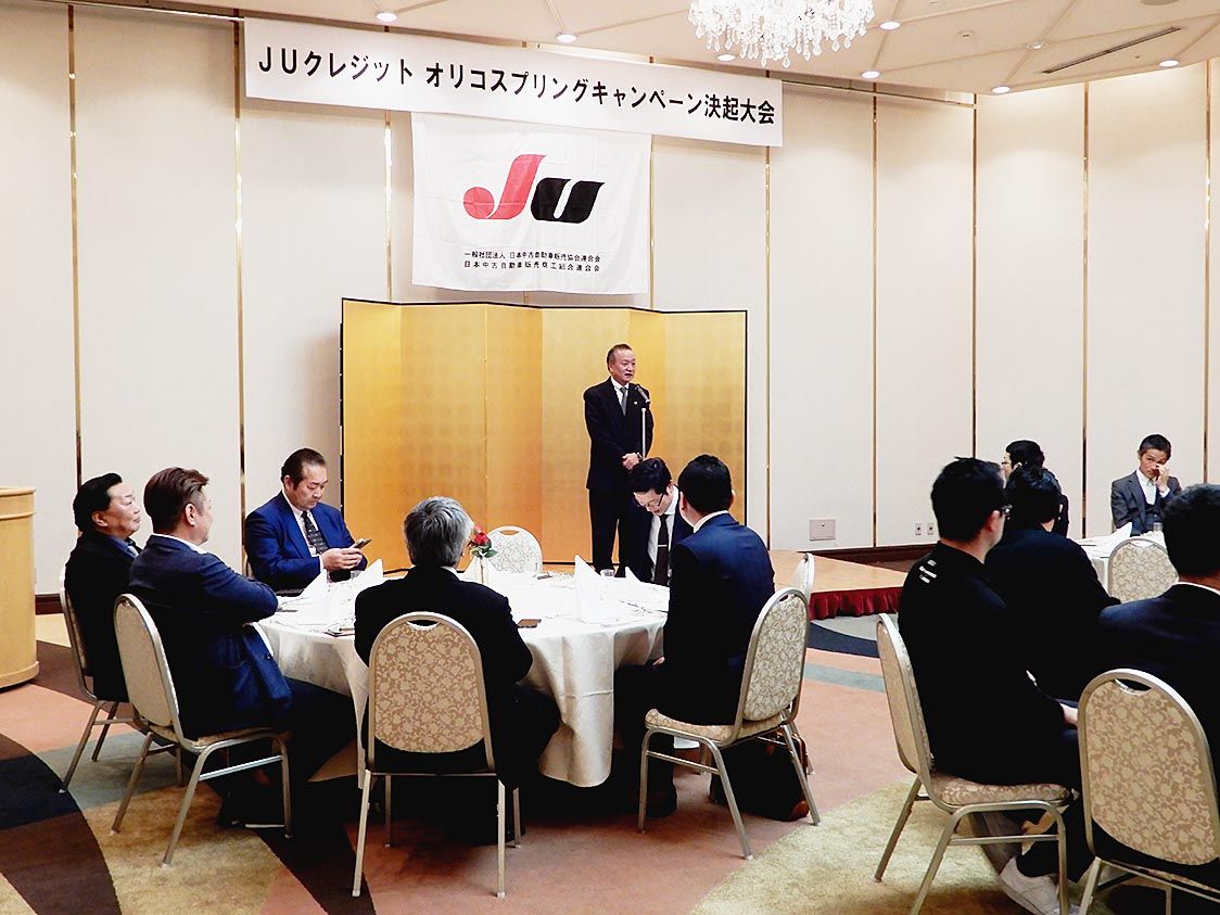 【大津】滋賀県中古自動車販売協会・同商工組合(JU滋賀、池田秀人会長・理事長)は、草津市内のホテルで「JUクレジット オリコスプリングキャンペーン決起大会」を開催した=写真。会員事業者が多数参加し、目標達成に向けて機運を高めた。キャンペー...