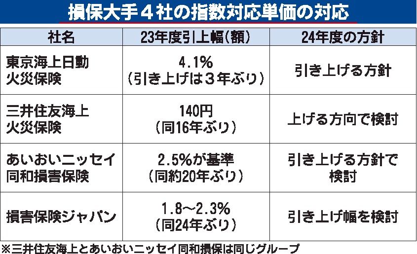 保険修理の工賃算出に用いる「指数対応単価」の2024年度分を引き上げる方向で損害保険大手4社が検討していることが分かった。金融庁の要請に基づき、単価の算出に用いる経済指標を消費者物価指数(CPI)以外にも広げる。正式に決まれば昨年度に続い...