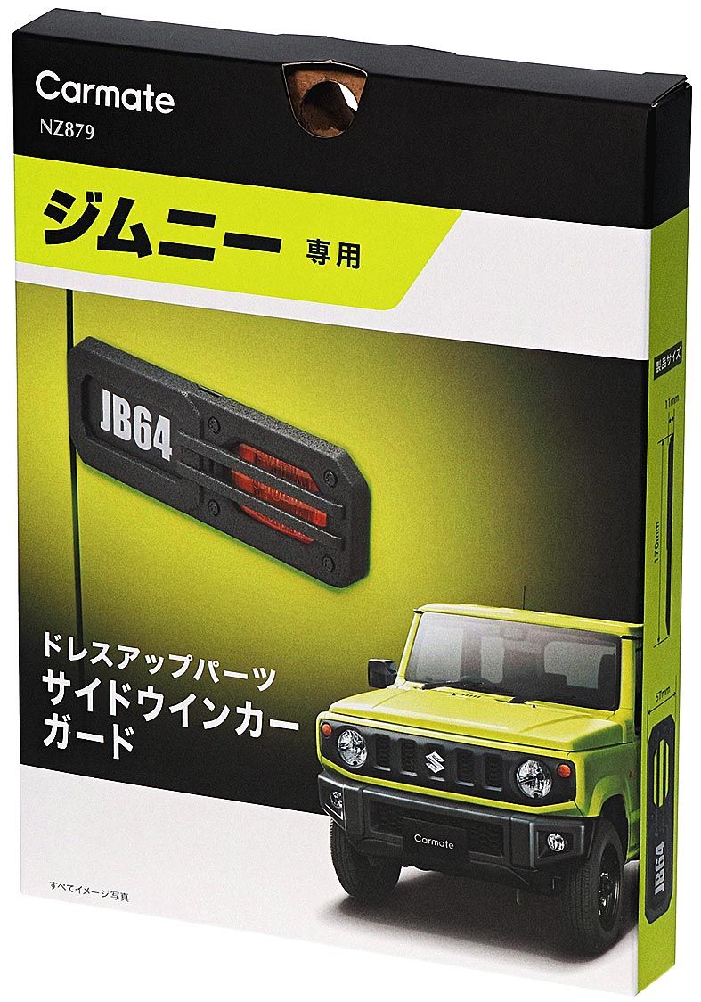 カーメイトは、スズキの軽自動車「ジムニー」と登録車「ジムニーシエラ」専用の市販用パーツ3種類を発売した。車体後部に取り付ける「バックドアヒンジカバー」は、純正品にない車体装着用のパーツを採用。2ピース構造とすることで、車体の無骨さを強調した。「サイドウインカーガード」には、車両の型式を表示したロゴプレートを付属。ボンネット用の「ブッシュワイヤーステー」は、車体との接触を防ぐ設計を施している。