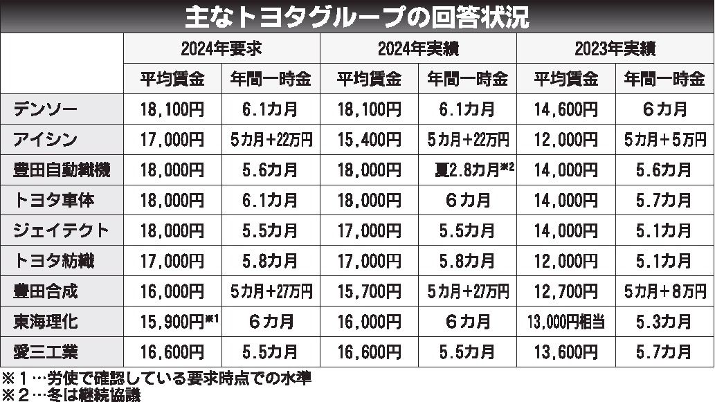 〈2024春闘〉全トヨタ労連、部品メーカーも相次ぎ満額回答 焦点はティア2以降への波及
