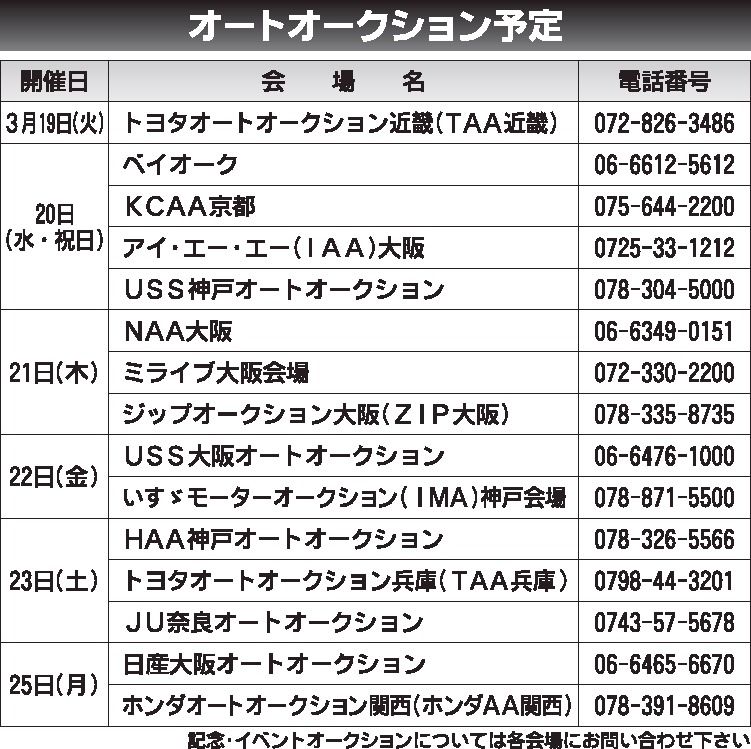 〈オートオークション予定〉近畿地区 2024/3/19~25