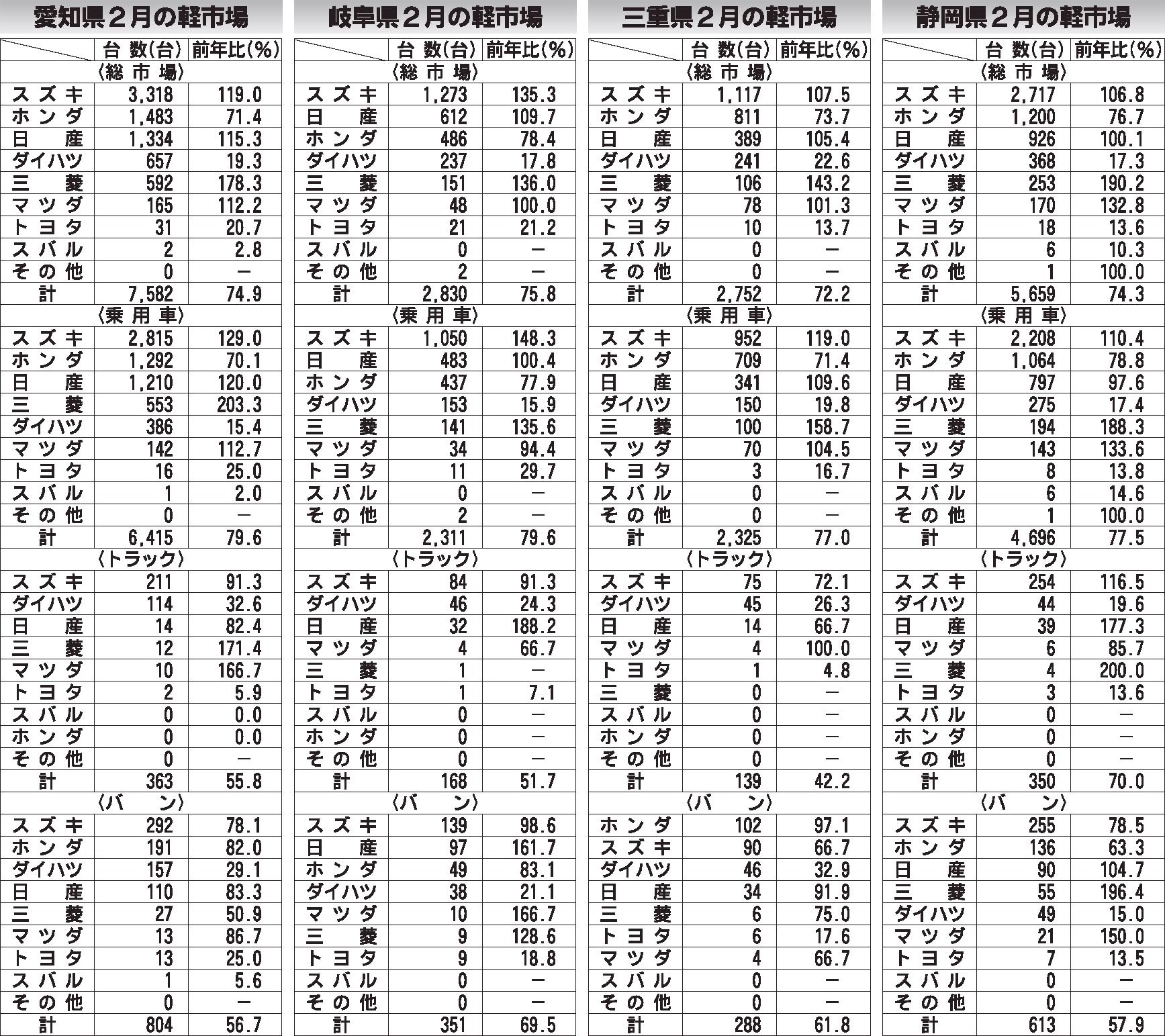〈2月の軽市場〉愛知県/岐阜県/三重県/静岡県