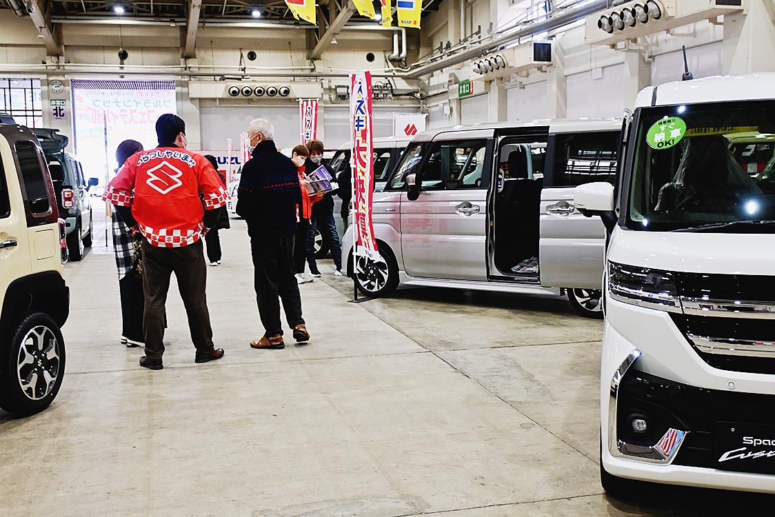 【福井】スズキアリーナ福井中央(井上智明社長)は、福井市の福井県産業会館で商談イベント「フルラインアップカーフェスティバル」を開催した=写真。3日間の開催期間で約2200人が来場。会場は家族連れなどでにぎわった。 イベントには「スペーシア...
