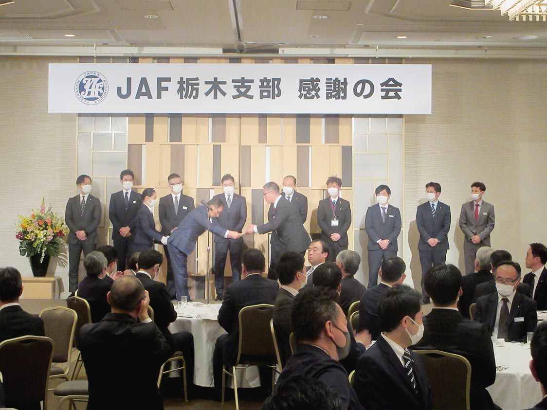 日本自動車連盟(JAF)栃木支部(岩瀬裕昭支部長)は、宇都宮市内のホテルで会員獲得において功績のあった販売会社及び販売会社の社員を表彰する「JAF栃木支部 感謝の会」を開催した。 開会あいさつで岩瀬支部長は「23年1~12月のJAF入会促...