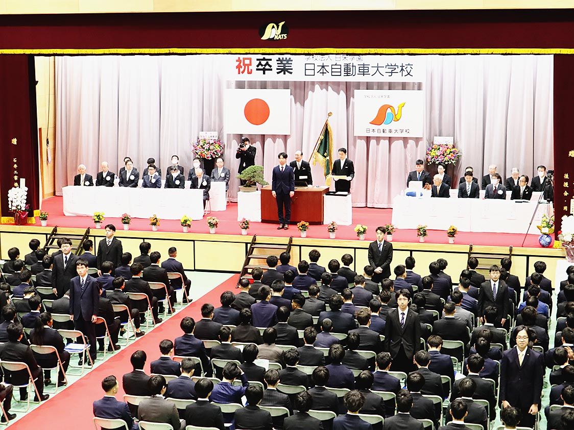 【千葉】日本自動車大学校(NATS、矢部明理事長・学校長)は、第34回「卒業証書授与式」を開催した。卒業生145人と進級生118人にそれぞれ卒業証書と修了証書が手渡された。 式には来賓、後援会役員企業、採用関係者、保護者ら300人近くが出...