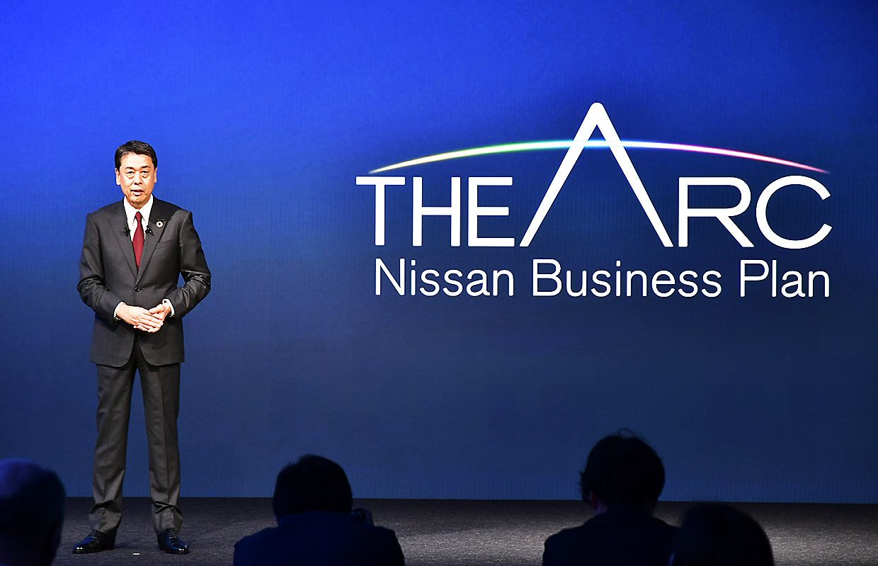 日産自動車は3月25日、新たな経営計画「The Arc」を発表した。2026年度までに16車種の電動車を含む30車種の新型車を投入し、乗用車の内燃機関搭載車の6割を刷新する。電気自動車(EV)では、次世代車のコストを3割削減。30年度までに内燃機関搭載車と同等のコストを目指す。これにより世界販売台数を26年度に23年度比100万台増となる455万台、営業利益率は6%以上を目指す。