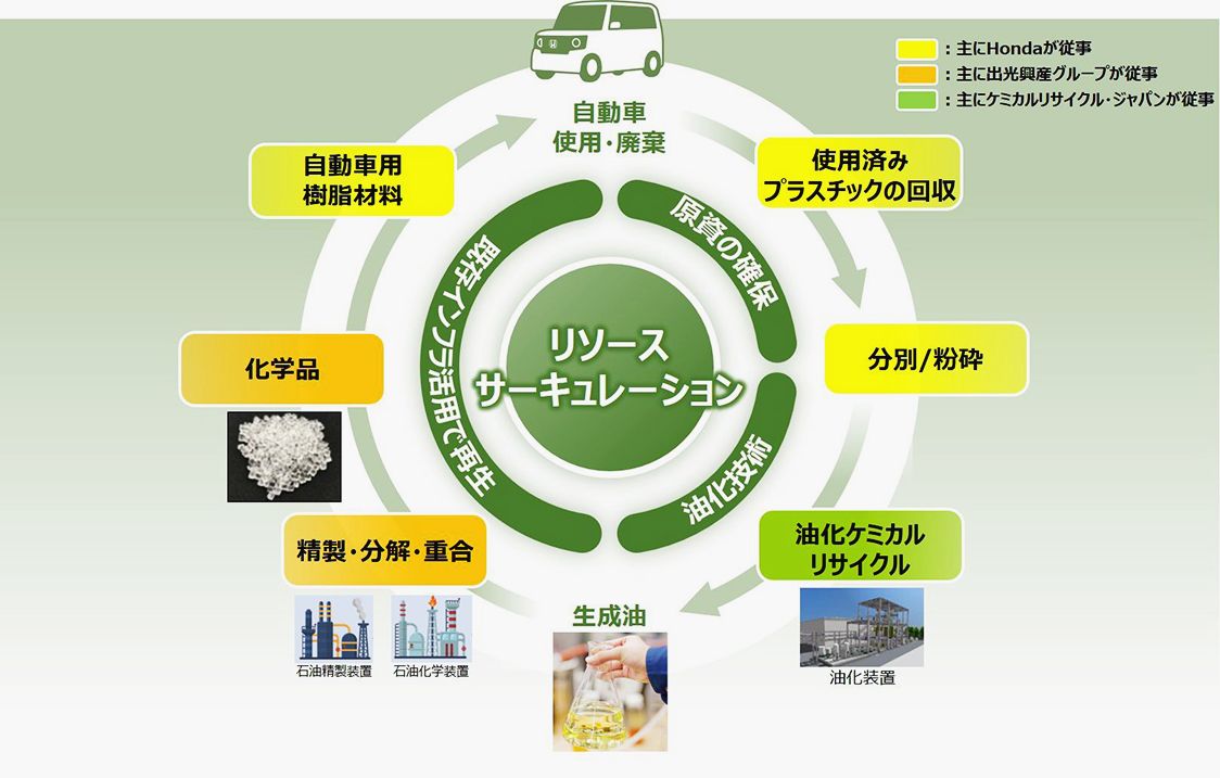 本田技研と出光興産、使用済み自動車のプラスチック再資源化で共同実証