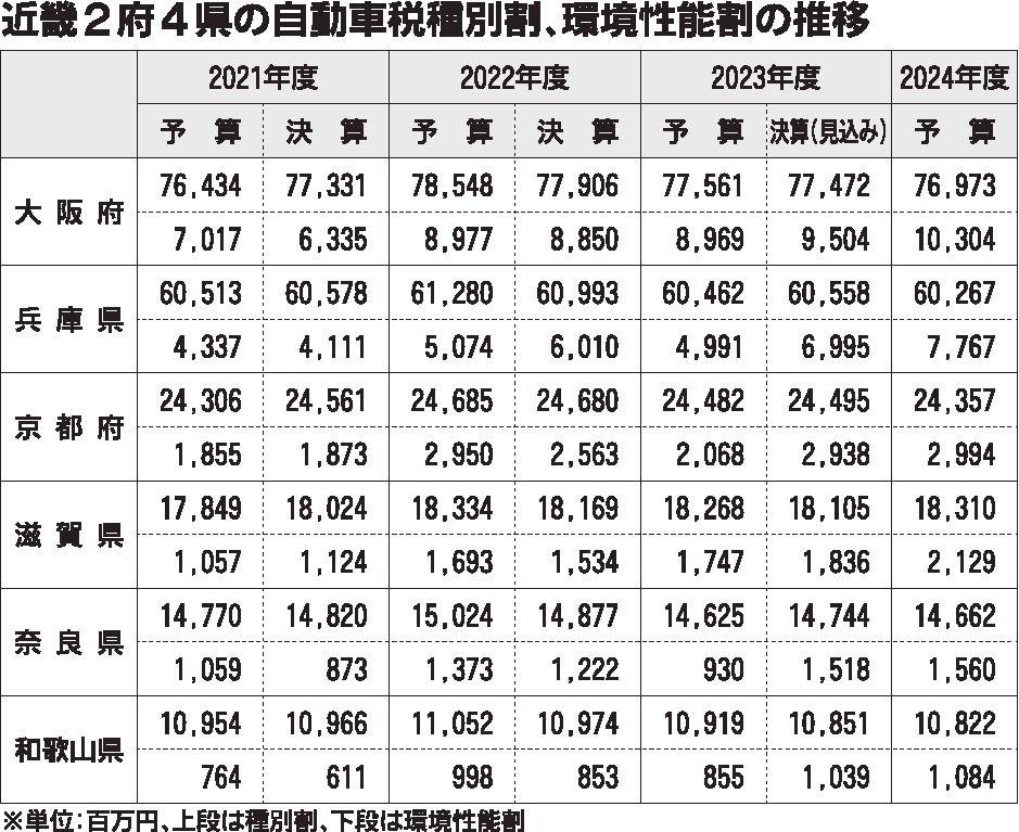 近畿自治体の2024年度予算 環境性能割は増収見込み 自動車税種別割は微減