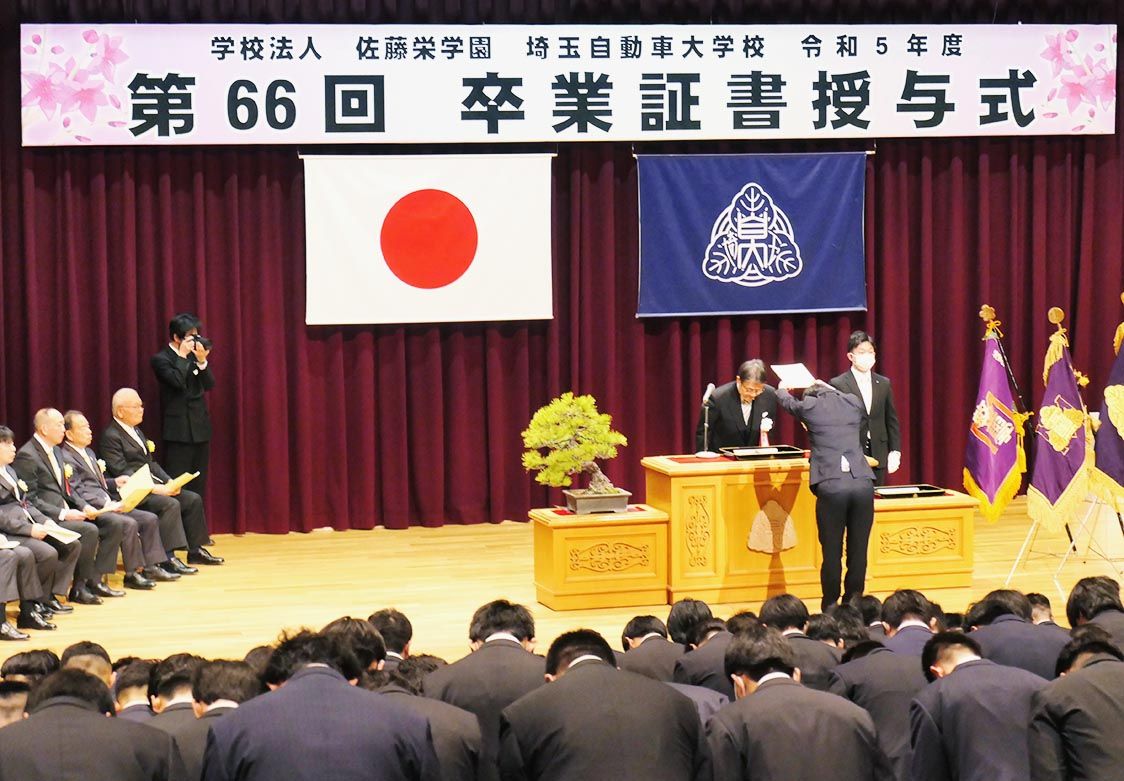 【さいたま】埼玉自動車大学校(新井和徳校長)は、校内の佐藤由江初代校長記念館で、卒業証書授与式を開催した=写真。 一級自動車整備科、2年制一級自動車整備科、二級自動車整備科、総合車体整備科、自動車車体整備科、カスタムボディ科、モータースポ...