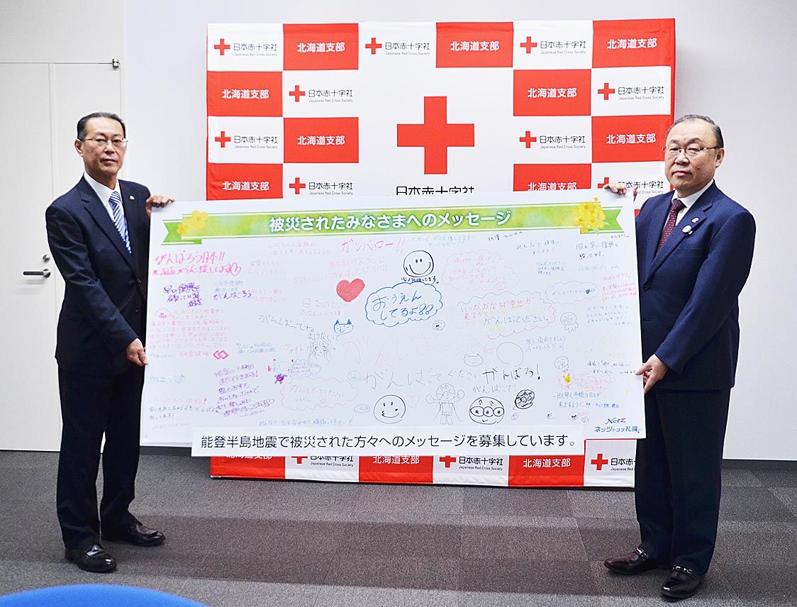 ネッツトヨタ札幌(鎌田直之社長)は、能登半島地震被災地への義援金として49万3千円を日本赤十字社に託した。3月9~17日の店舗イベントで来店客1人当たり55円を同社が積み立てるなどし、拠出した。 義援金は、3月9~17日の試乗フェア「7デ...