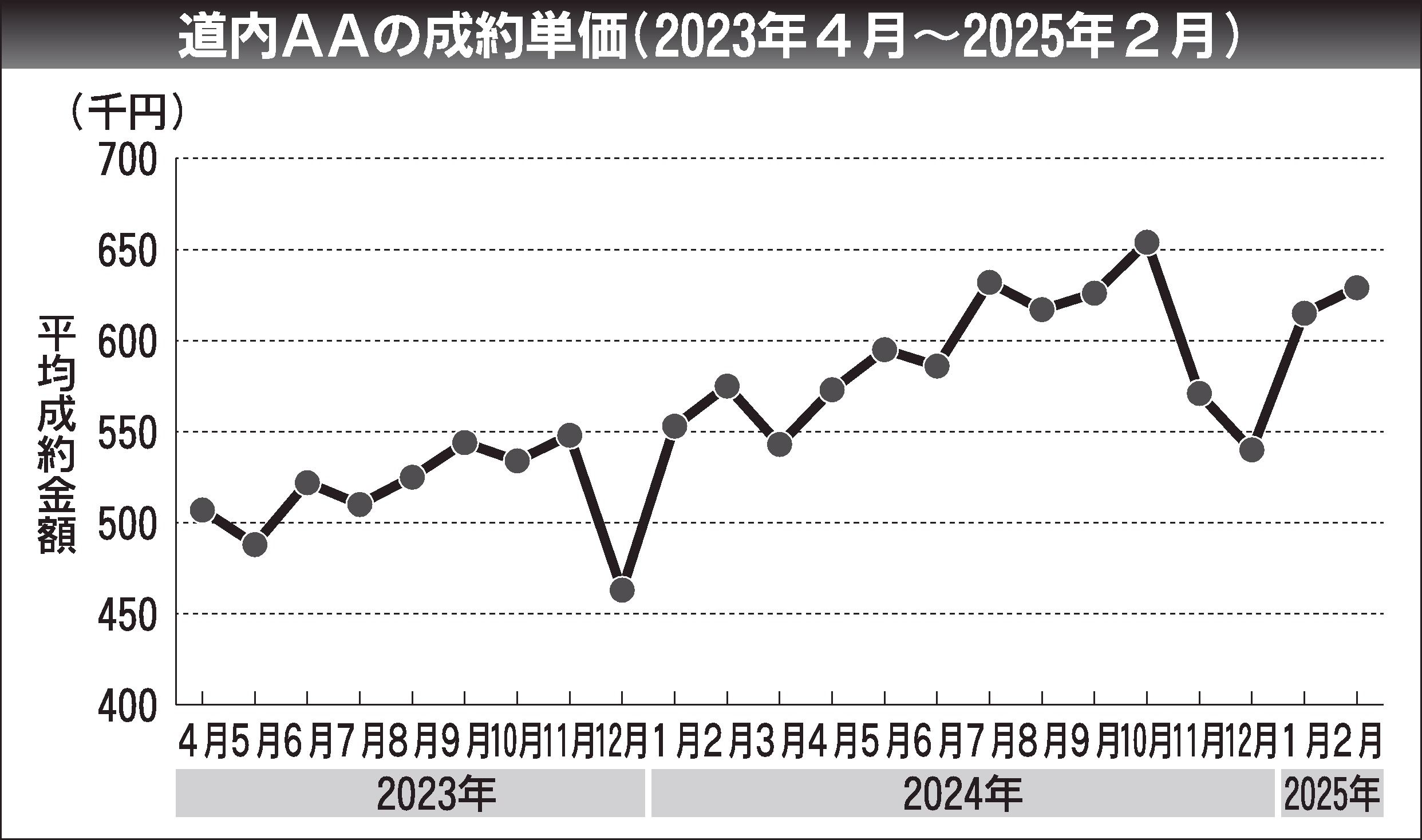 道内中古車オークション(AA)の2月の台当たり平均成約金額は63万円となり、2カ月連続で60万円を超えた。前年同月と比べて9.5%(5万4千円)、前月と比べて2.2%(1万4千円)上昇した。 日刊自動車新聞が道内11会場の実績を集計した。...