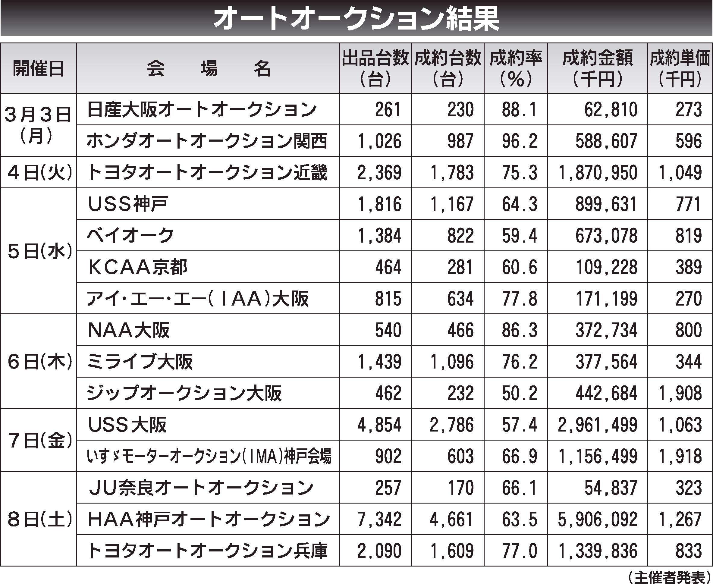 〈オートオークション結果〉近畿地区 2025/3/3~8