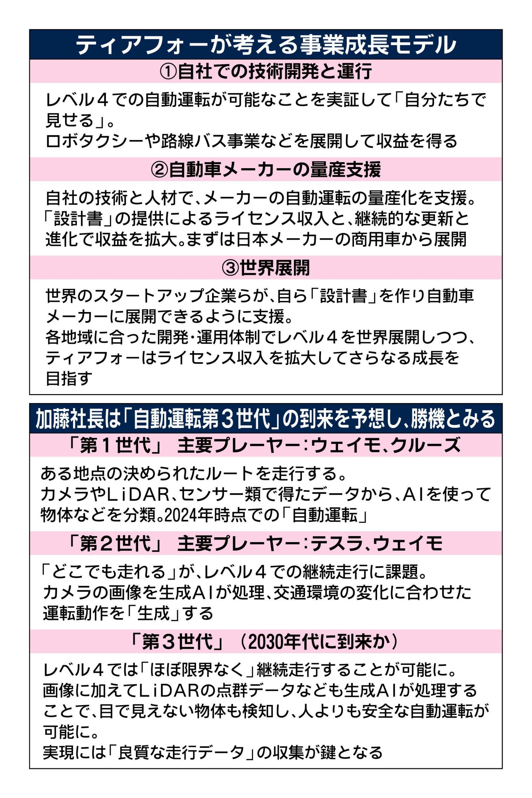 自動運転市場の潮目が変化し始めた。スタートアップのティアフォー(東京都品川区)は「レベル4(特定条件下における完全自動運転)」のロボットタクシーを昨年末までに都内2カ所で実証した。業界をリードするアルファベット(グーグル)傘下の米ウェイモ...