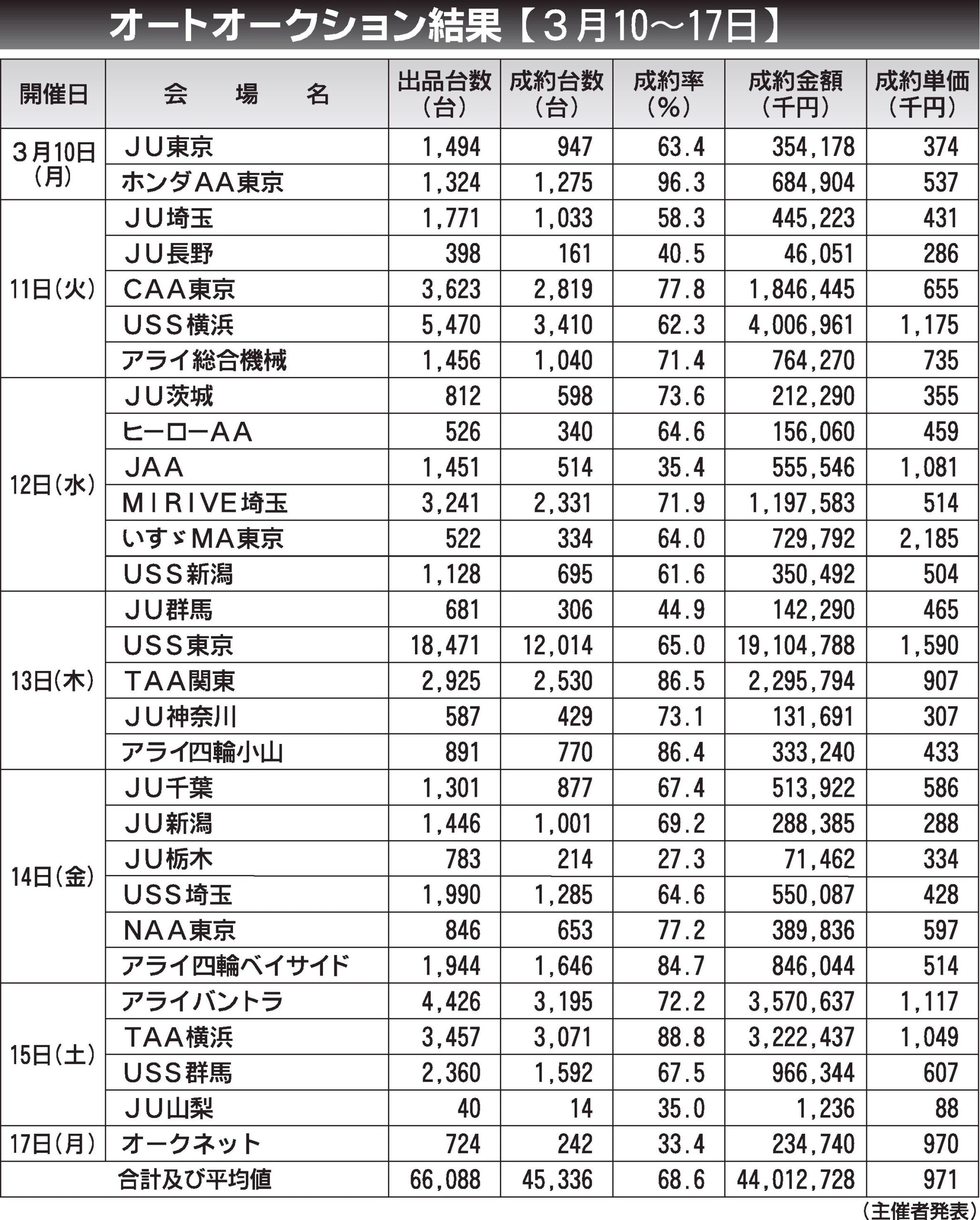 〈オートオークション結果〉首都圏 2025/3/10~17