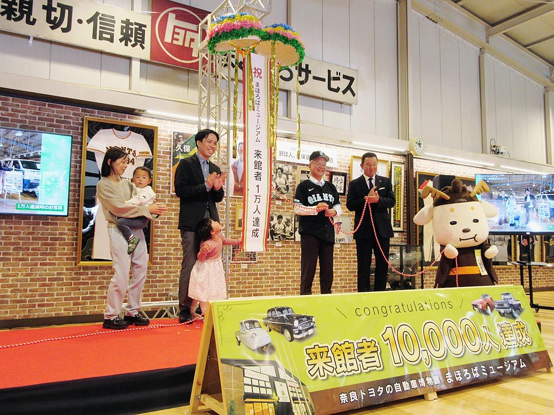 【奈良】奈良トヨタ(菊池攻社長)は、同社が運営する自動車博物館「まほろばミュージアム」(奈良市)で「奈良トヨタまほろばミュージアム来館者1万人達成記念セレモニー」を開催した。1万人目の来館者に証明書と副賞品を贈呈した。 2月26日の式典で...