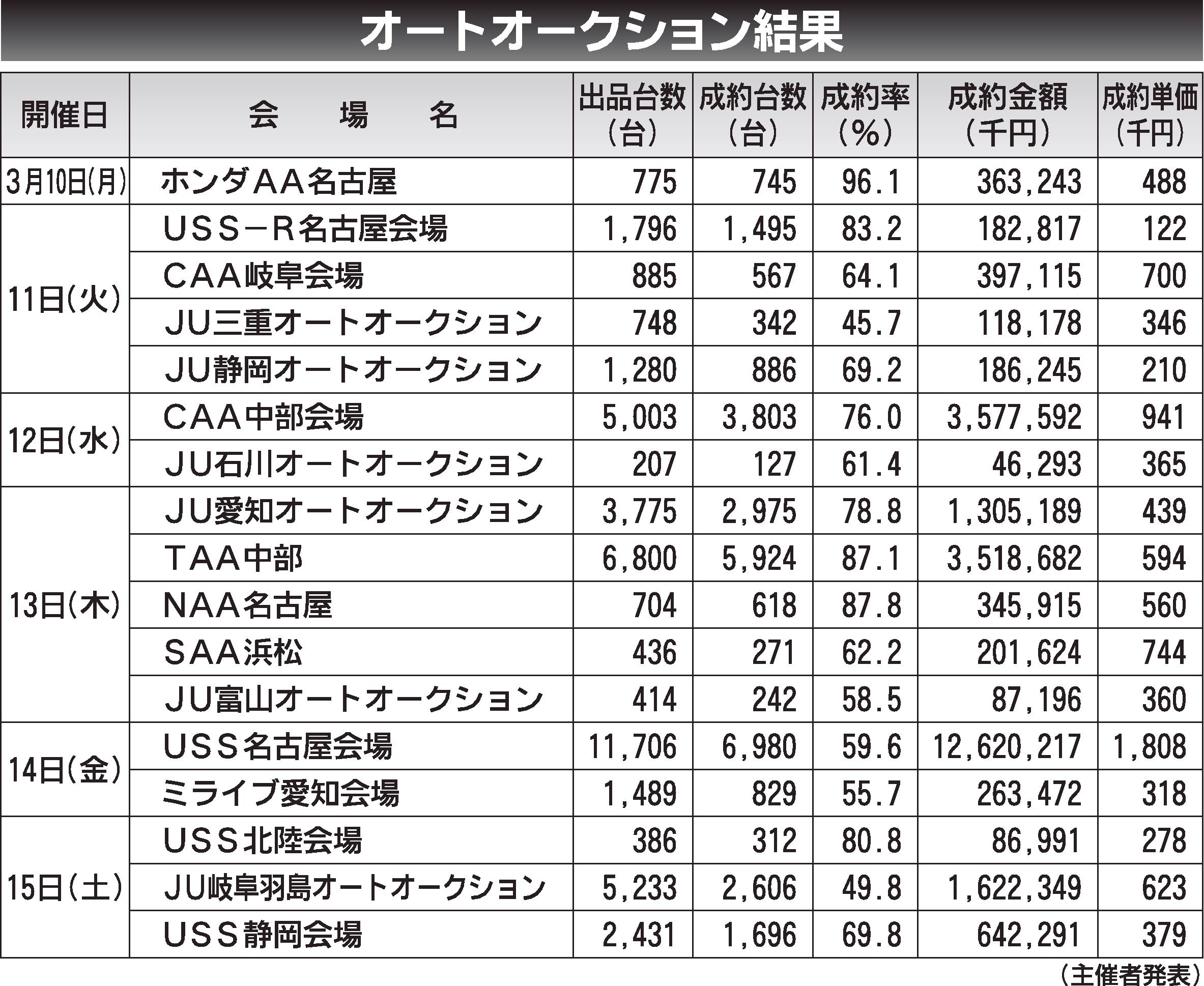 〈オートオークション結果〉中部地区 2025/3/10~15