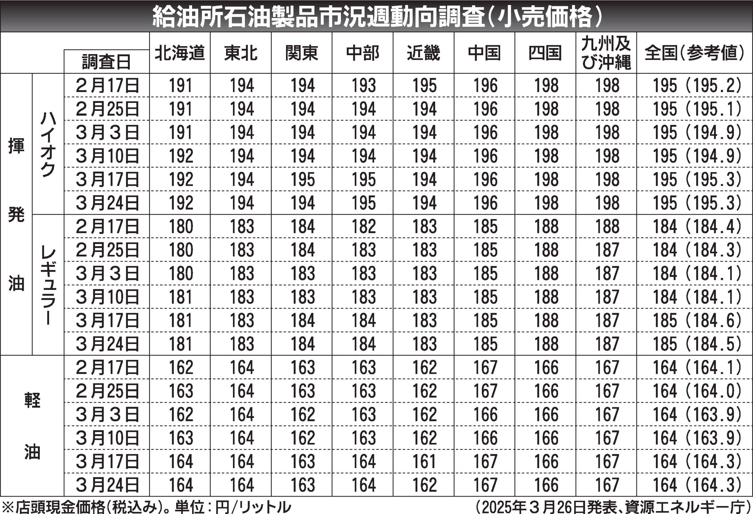〈給油所石油製品市況週動向調査〉(小売価格)2025/2/17~3/24