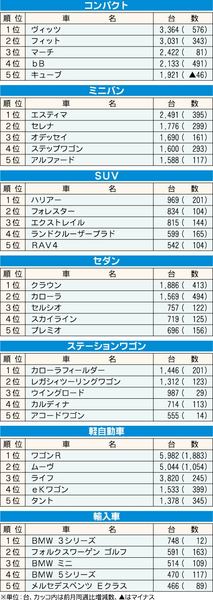 全国主要中古車オークション(AA)相場の情報サービス「AAD―Net」による2009年2月の主要カテゴリー別落札台数ランキングをまとめた。車販売が春商戦本番を迎える中、落札台数は前月に比べ約2万台近く伸びた。軽自動車が前月比7290台増と...
