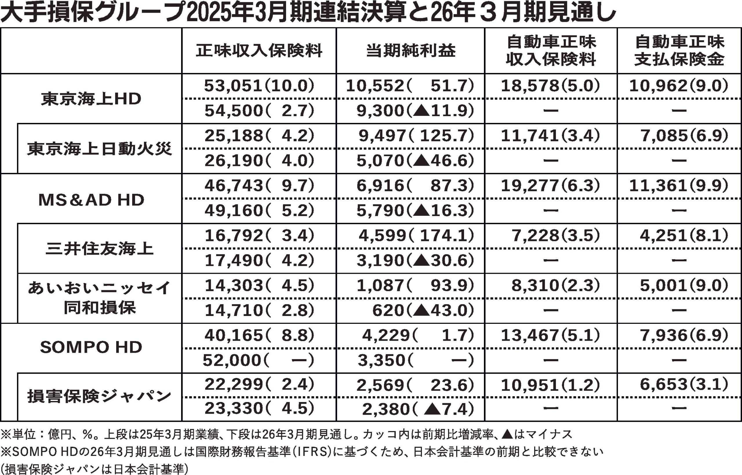 大手損保の2025年3月期決算、純利益2年連続過去最高 東京海上が初の1兆円超え