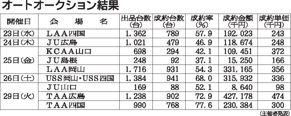 • 中・四国, 中古車流通