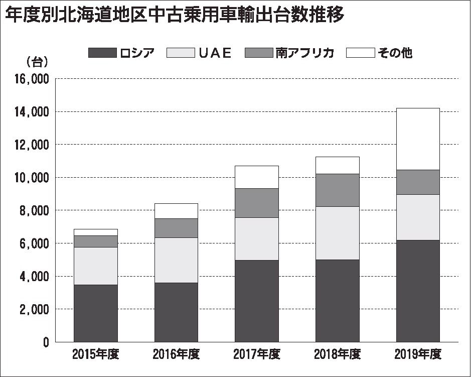 北海道地区の2019年度中古乗用車輸出台数(速報値)は、前年度比26・4%増の1万4200台で、3年連続して1万台を上回った。ミャンマー向けは大幅に増え、ロシア、アラブ首長国連邦(UAE)に次いで量的に3番目になった。3月度は世界的な新型...