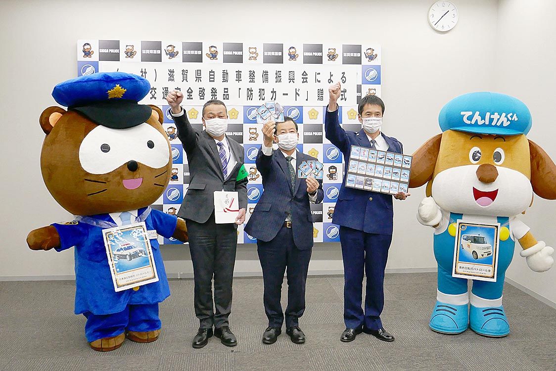 交通事故の防止や特殊詐欺などの犯罪抑止に役立ててもらおうと、滋賀県自動車整備振興会(後藤敬一会長)が滋賀県警察本部に防犯・交通安全啓発品「防犯カード」を贈呈した=写真。15日に県警本部(大津市)で贈呈式を開催し、後藤会長が笹井典之生活安全...