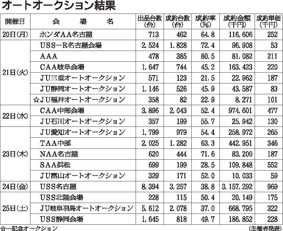〈オートオークション結果〉