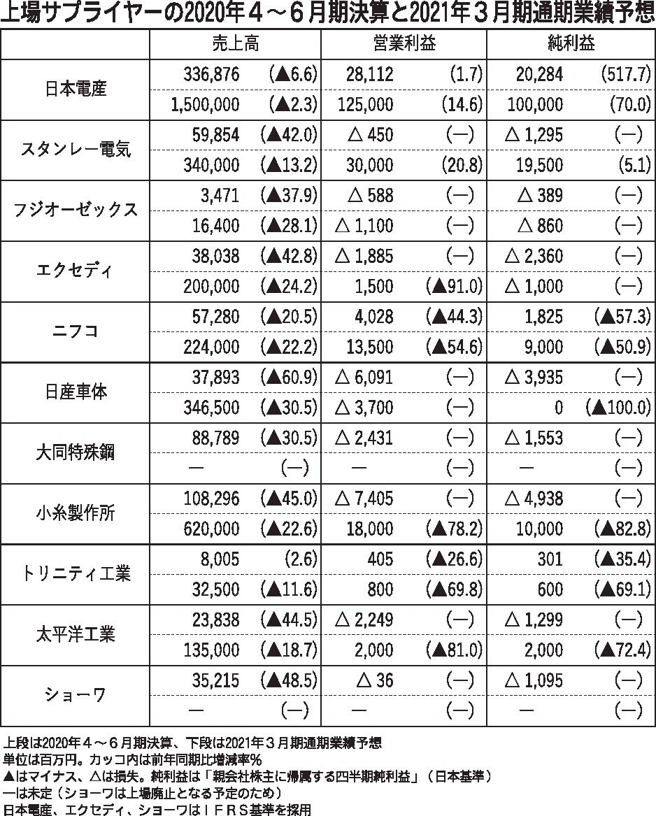 〈上場サプライヤーの2020年4~6月期決算と2021年3月期通期業績予想〉