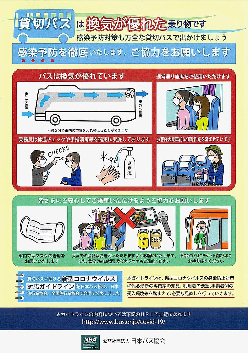 貸し切りバスのコロナ対策PR 日バス協、リーフレット作成