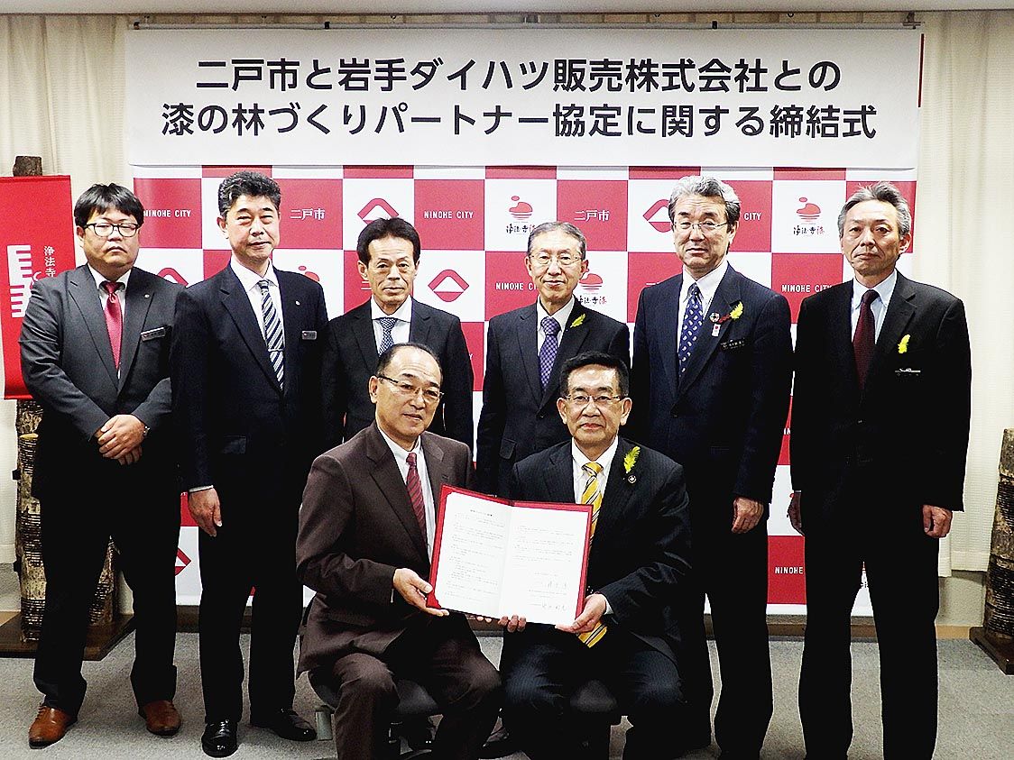 岩手ダイハツ、二戸市と連携して 漆の林づくりパートナー協定 活性化を後押し