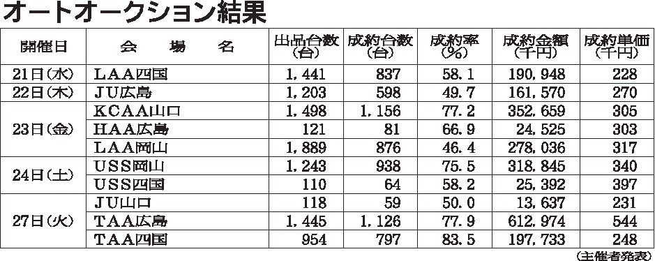 〈オートオークション結果〉中四国地区 2021/4/21~27