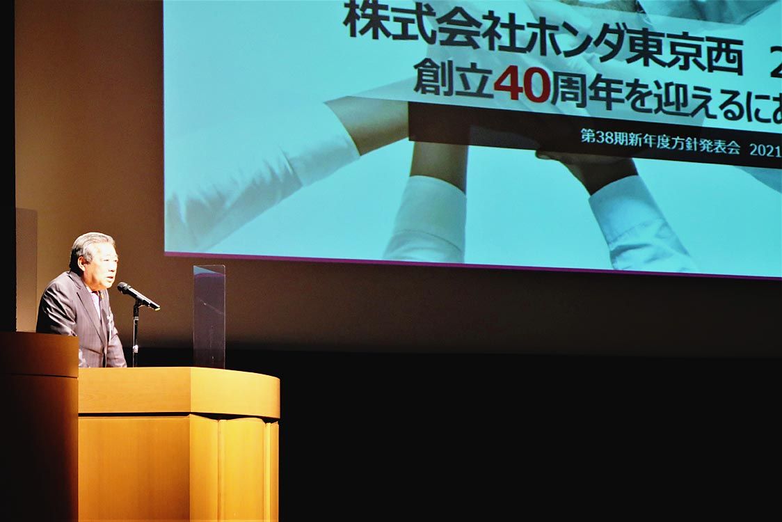 ホンダ東京西(加藤和夫社長)は全社員を集めた第38期新年度方針発表会を東京都羽村市の羽村市生涯学習センターで開催した=写真。加藤社長が2025年に迎える創立40周年に向けた目標と21年度方針の概要を発表した後、営業部、サービス部、管理部の...