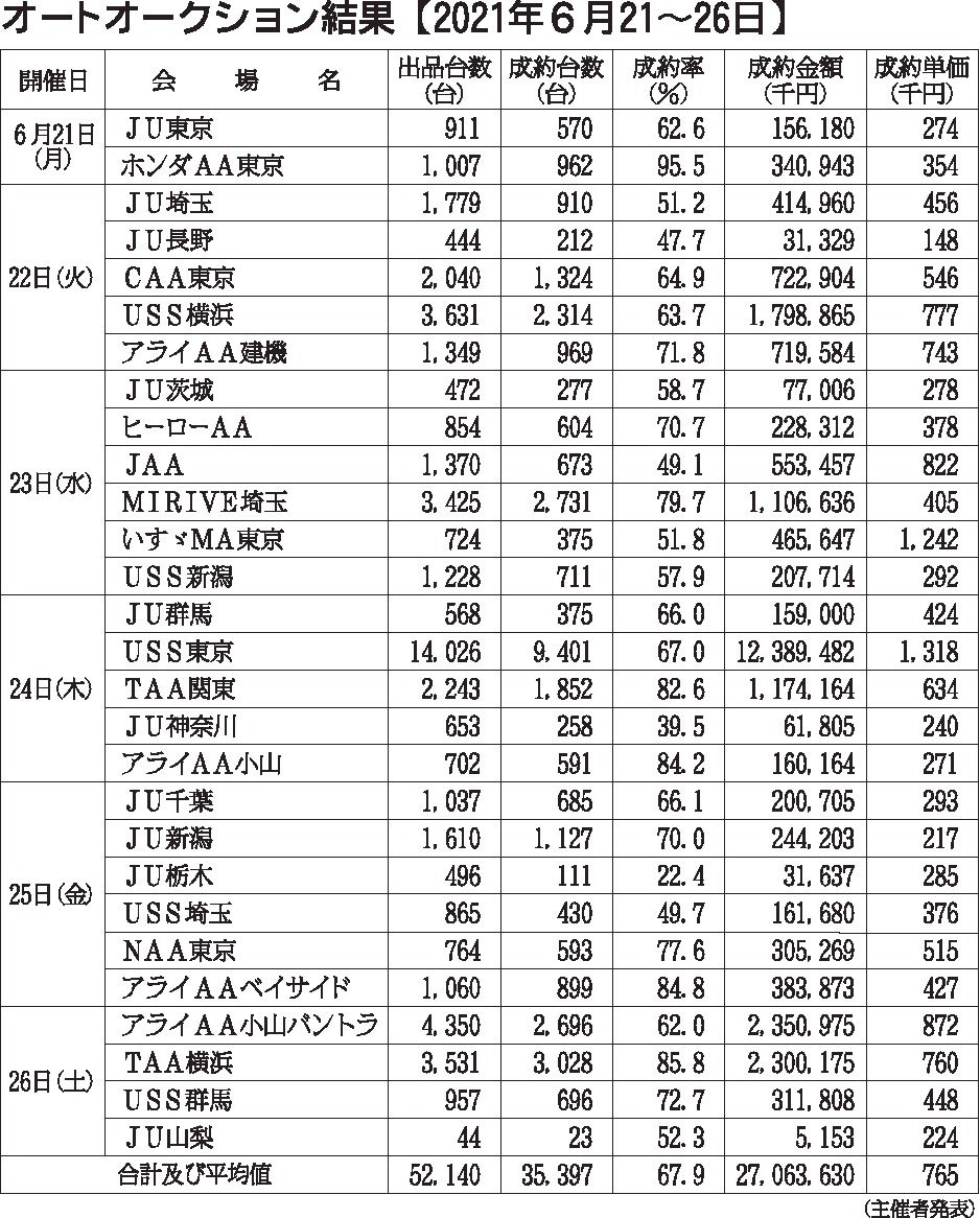 〈オートオークション結果〉首都圏 2021/6/21~26