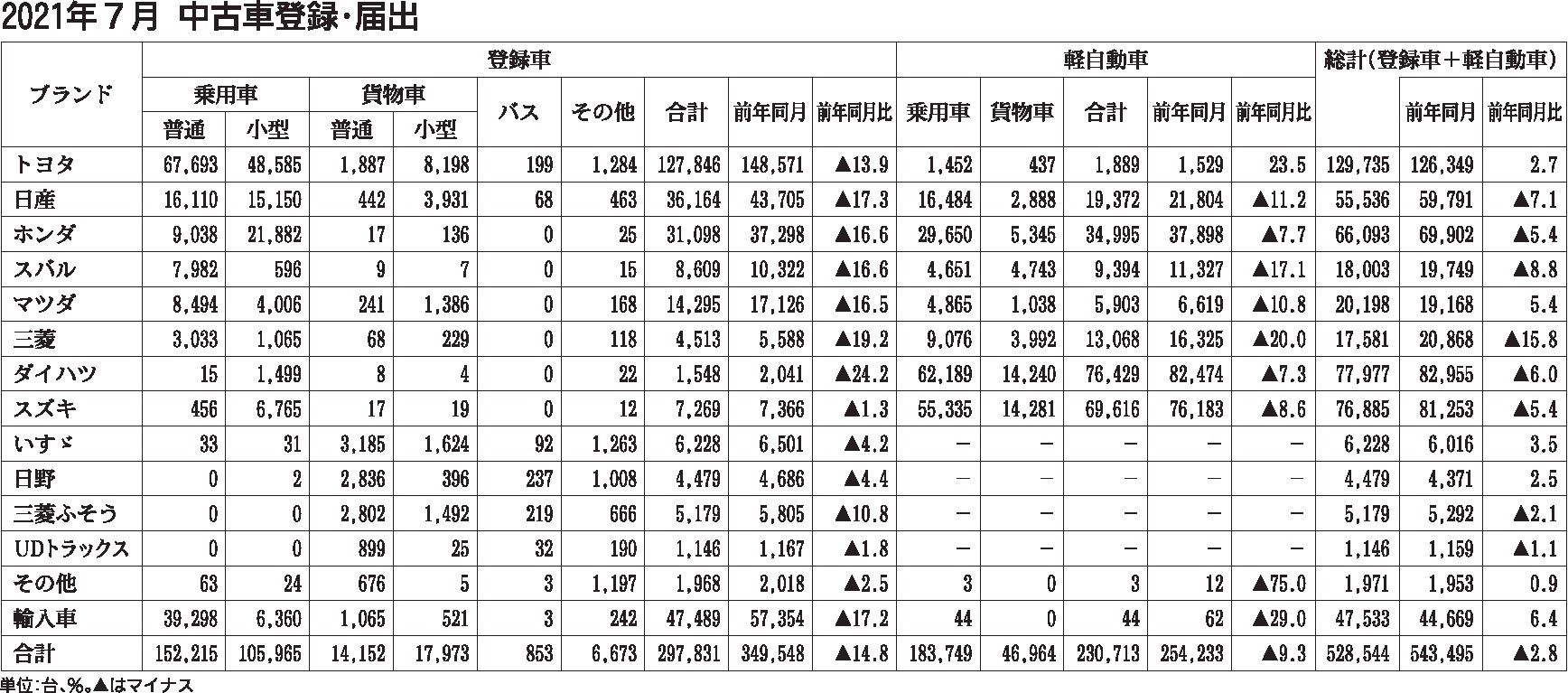 〈2021年7月 中古車登録・届出〉