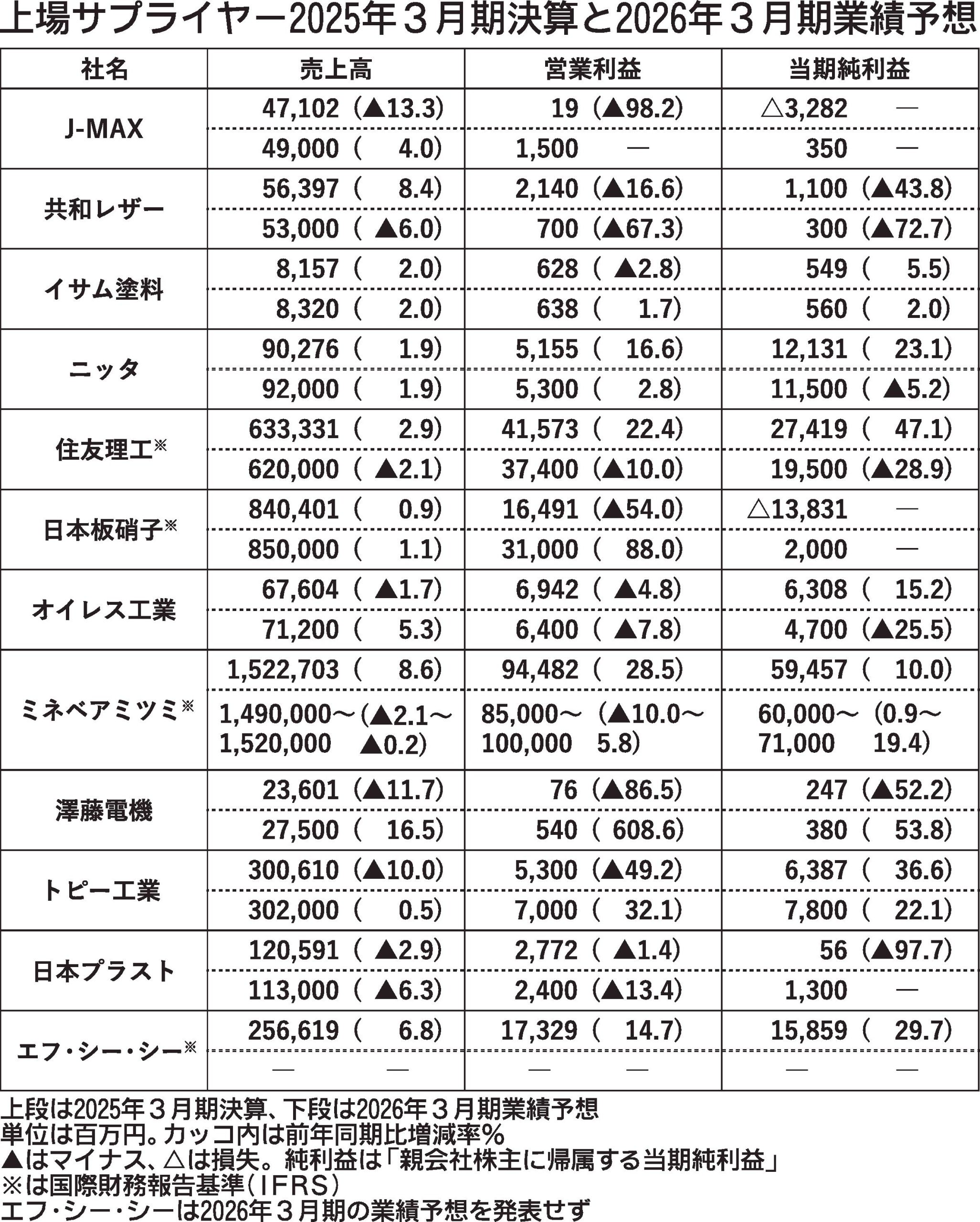 〈上場サプライヤー2025年3月期決算と2026年3月期業績予想〉(5/22付)