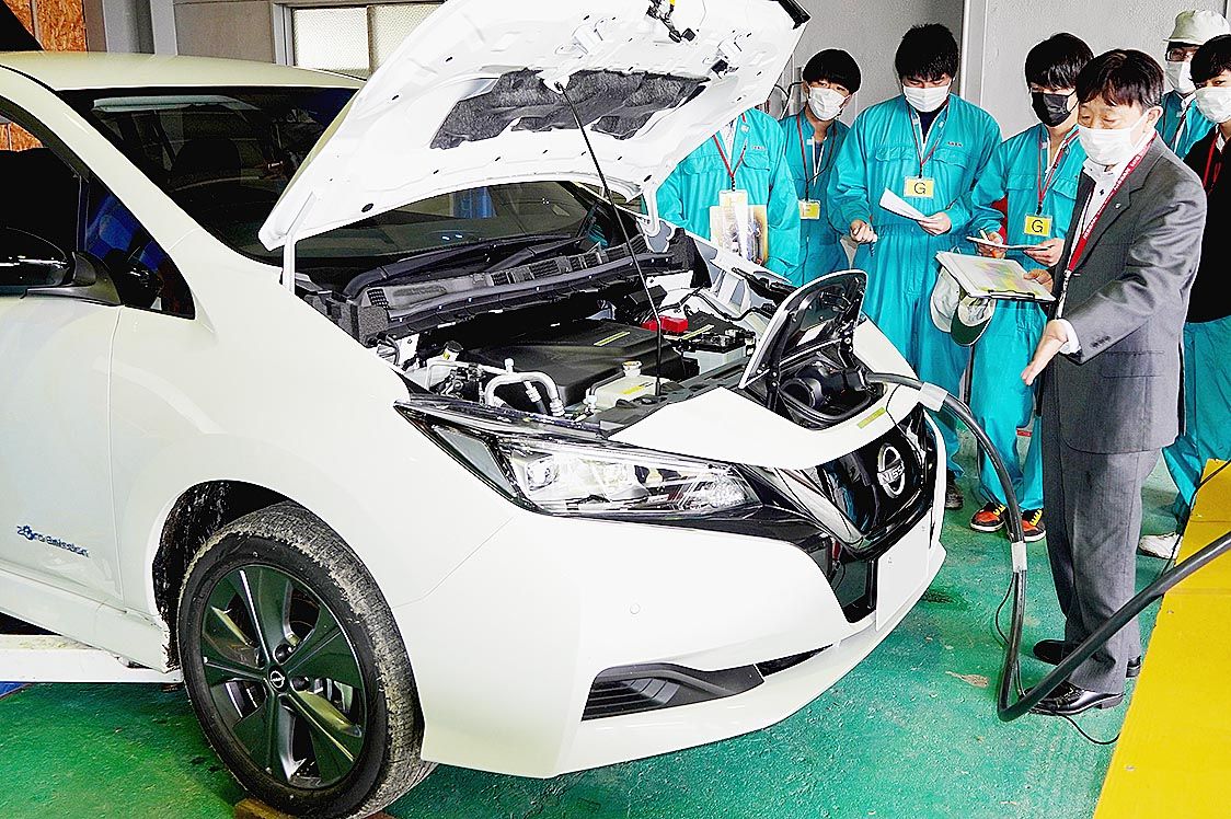 【仙台】日本自動車教育振興財団(内山田竹志理事長)は、講師を派遣して行う出張授業を宮城県色麻町の宮城県加美農業高等学校で実施した=写真。日産サティオ宮城の社員が講師を務め、農業機械科の3年生29人が「電気自動車について」の講義を受講した。...