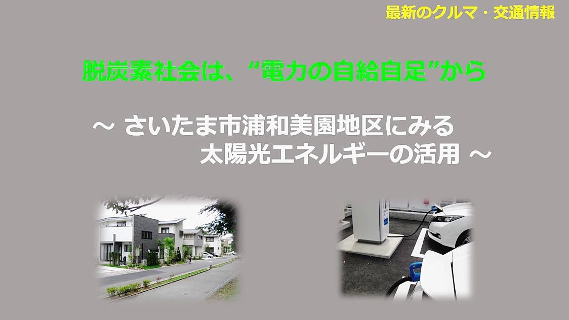 日本自動車教育振興財団(JAEF、内山田竹志理事長)は、高校生向けの動画学習サイト「早わかり!クルマ塾」で太陽光エネルギーの有効活用に関するレポート「脱炭素社会は、〝電力の自給自足〟から~さいたま市浦和美園地区にみる太陽光エネルギーの活用~」を公開した。