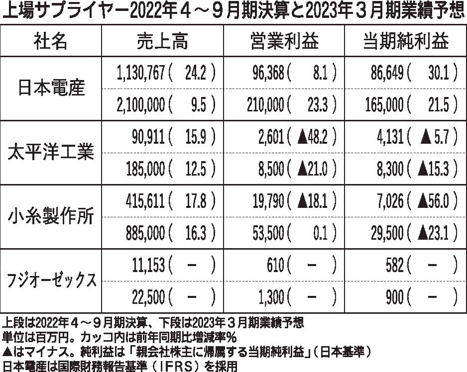 〈上場サプライヤー2022年4~9月期決算と2023年3月期業績予想〉(10/31付)