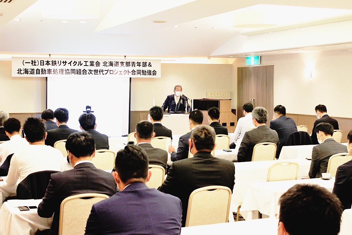 【札幌】北海道自動車処理協同組合(石上剛理事長)と日本鉄リサイクル工業会北海道支部(駒谷僚支部長)は、合同勉強会を市内のホテルで開いた。石上車輌の石上剛会長とマテックの杉山博康社長が、それぞれ講演。参加者は、後継者や経営幹部として必要な能...