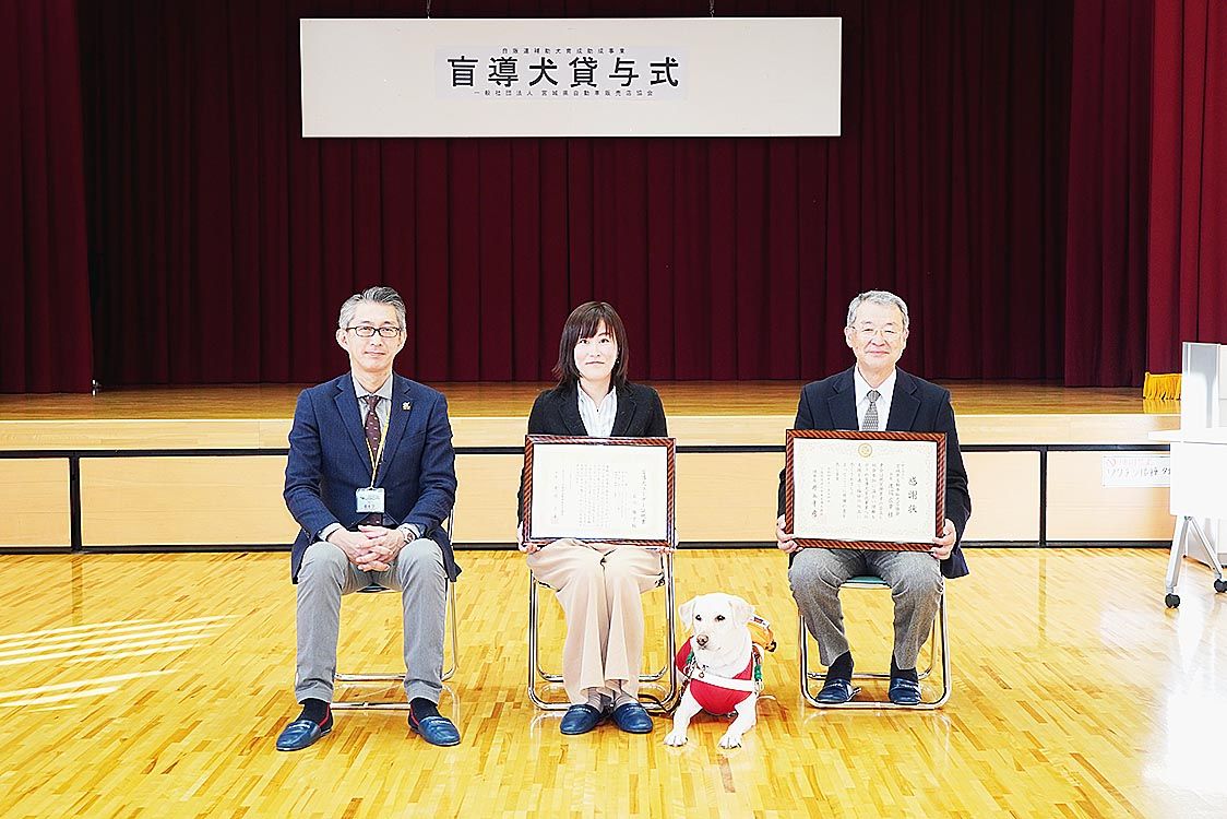 【仙台】宮城県自動車販売店協会(渡辺広章会長)は、日本自動車販売協会連合会(自販連)が行っている「補助犬育成助成事業」に基づき、県内の女性に盲導犬を貸与した。宮城県では今回で7頭目の貸与となる。 宮城県東松島市の矢本東市民センターで「盲導...