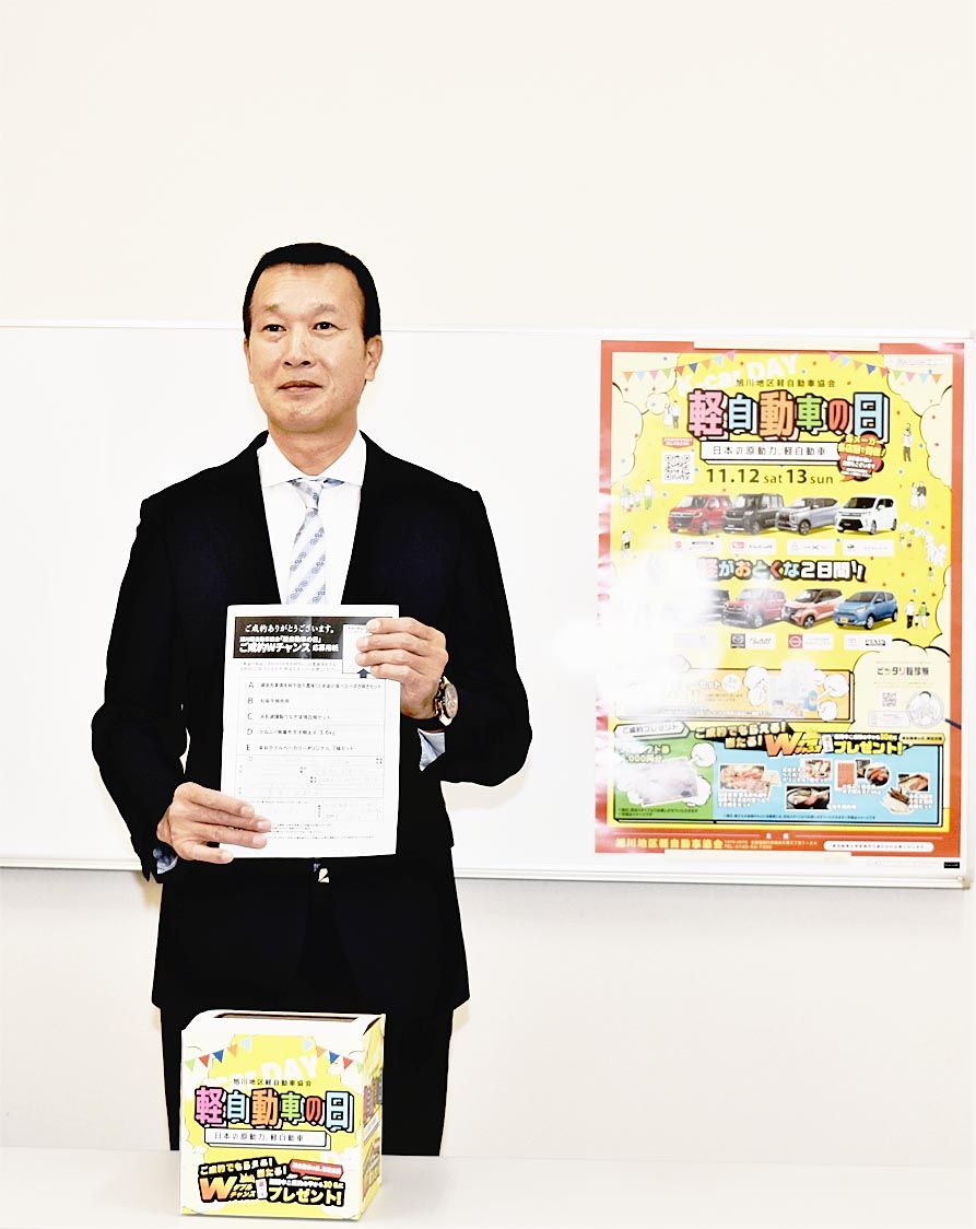 【旭川】旭川地区軽自動車協会(松倉直幸会長)は、「軽自動車の日」成約Wチャンスプレゼントの抽選会を実施した。期間中の新車成約者95人の中から、抽選で30人に全国グルメセットが当選した。 2年目を迎えた「軽自動車の日」は12、13日の2日間...