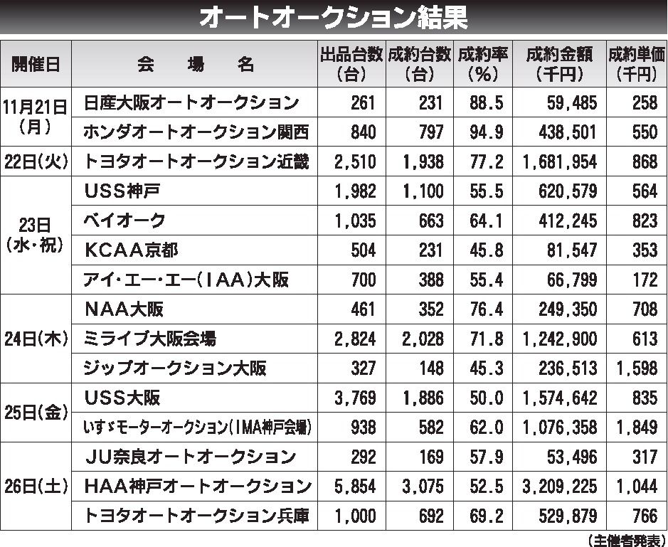 〈オートオークション結果〉近畿地区 2022/11/21~26