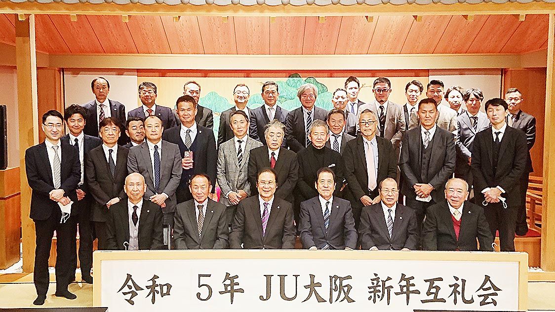 【大阪】大阪府中古自動車販売協会・同商工組合(JU大阪、財藤和喜男会長・理事長)は、大阪市天王寺区の天王殿で「令和5年JU大阪新年互礼会」を開いた=写真。 財藤会長・理事長は「コロナ禍の継続で昨年は自動車業界への打撃が大きかった。このよう...