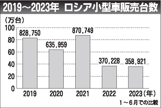 ロシアがウクライナに侵攻した2022年2月24日以降、ロシアでの小型車(乗用車および3・5㌧未満の小型商用車)の新車販売台数が急減している。22年3月は前年同期より63%、6月には同84%も減少。22年全体では前年比59%減の68万737...