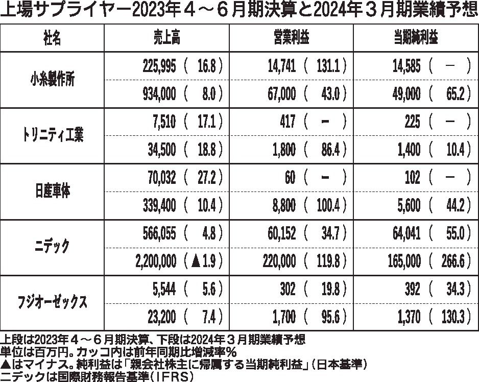 〈上場サプライヤー2023年4~6月期決算と2024年3月期業績予想〉(7/31付)