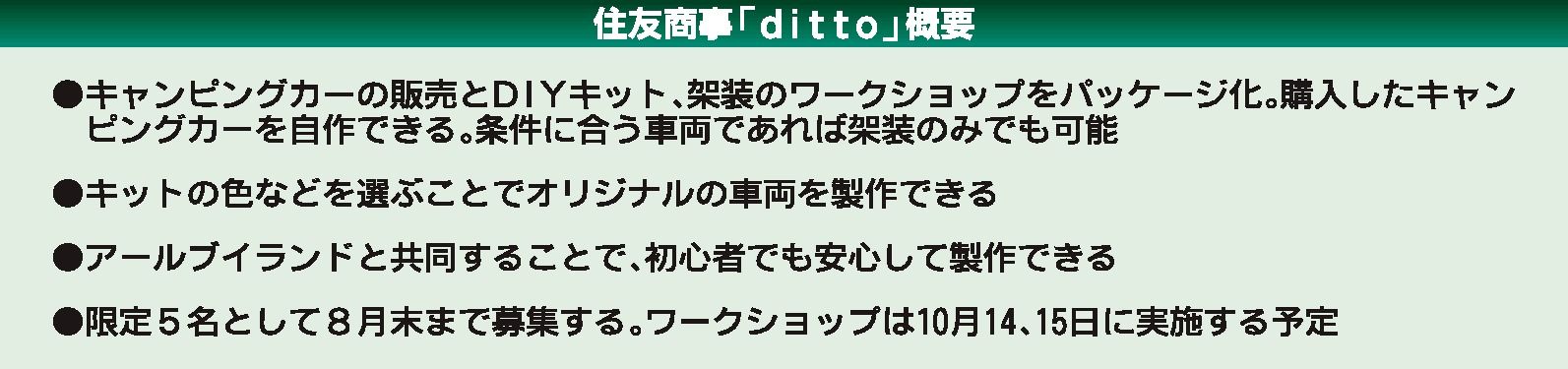住友商事の新サービス「ditto」、ユーザー自らキャンピングカーを製作 事業化を視野に試験プロジェクト