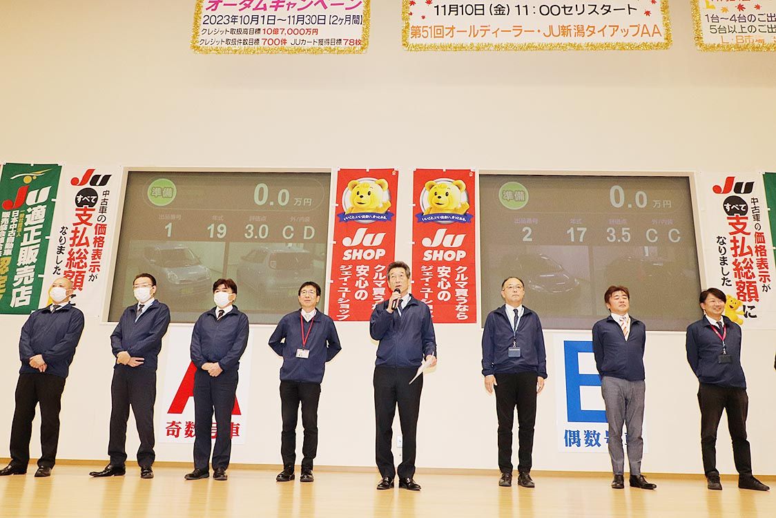 【新潟】JU新潟(海津博理事長)は、「JU全国リレー・第51回オールディーラー・JU新潟タイアップBIG AA」を開催した=写真。JU中販連の全国リレーオートオークションと県内ディーラー協力によるダブルタイトルとして実施。小売り市場の活性...