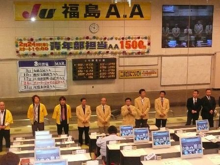 【福島】福島県中古自動車販売商工組合(JU福島、川村秀夫理事長)青年部会(佐藤純部会長)は2月24日、「青年部担当記念AA」を開催、年間屈指の大型オークションで成約率79・3%をマークした。 青年部担当AAは年間3回開催しており、JU福島...